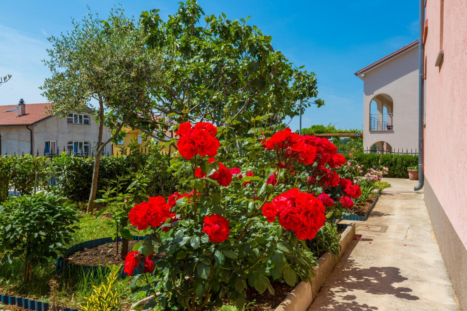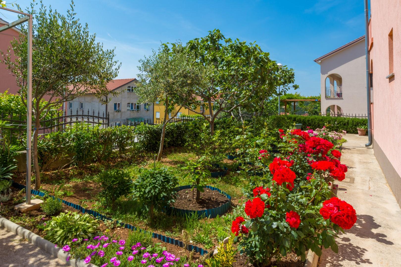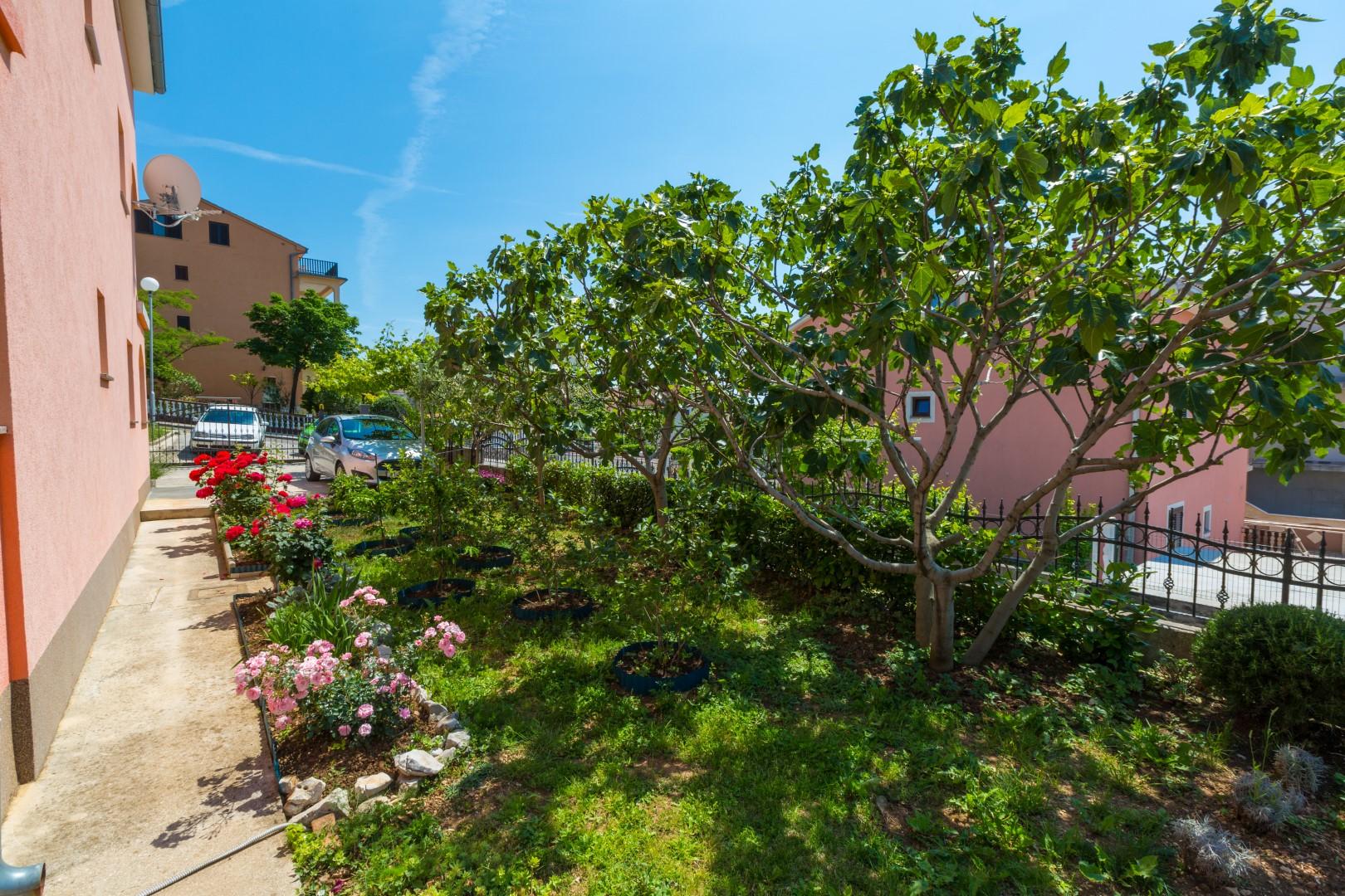 Guests also have access to a shared terrace with a barbecue, ideal for socializing and preparing meals outdoors, as well as a secured parking space in the house yard.