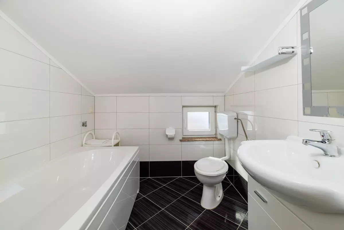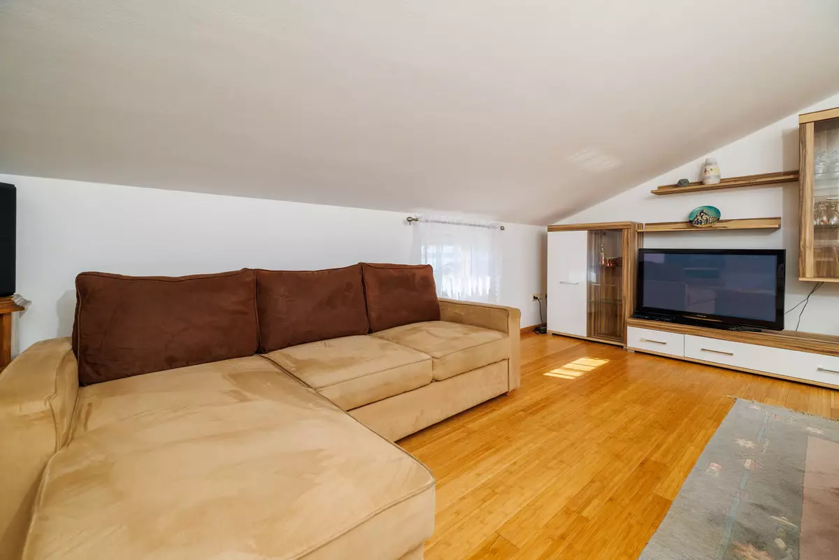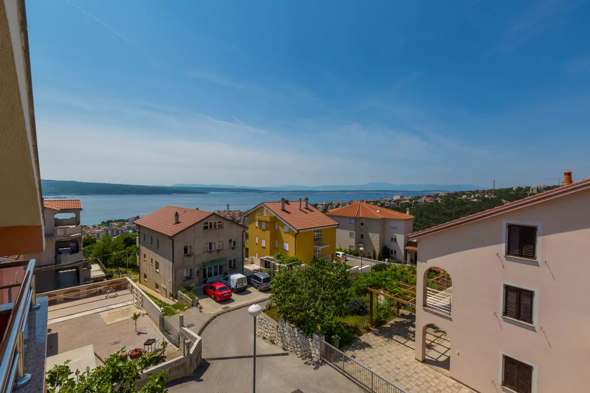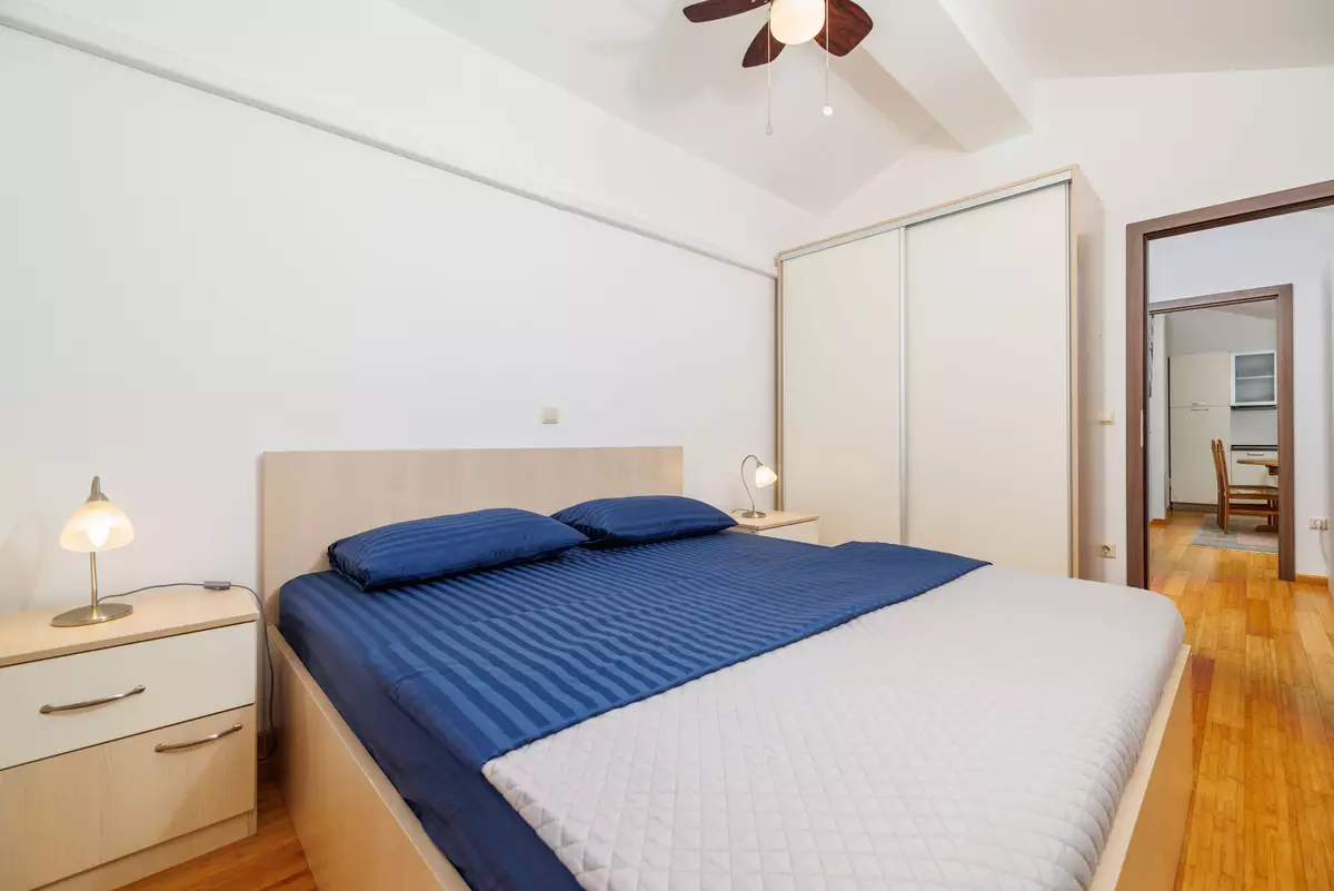 The apartment for 4–5 persons is located in the attic of the house and offers a comfortable stay with air conditioning, Wi-Fi, and a balcony with a beautiful sea view. Due to its attic location, the apartment features sloped ceilings in all rooms, giving it a unique and cozy atmosphere.
