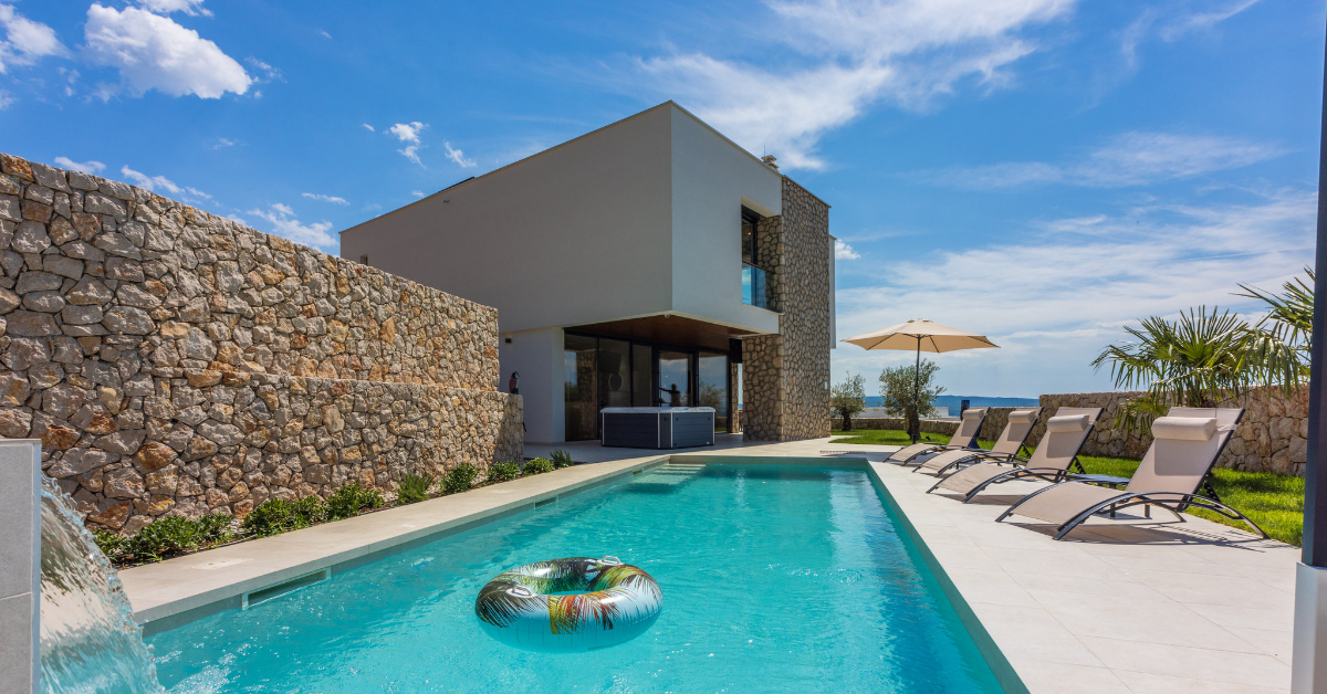 Near the popular sandy beach of Crikvenica, in a villa district, surrounded by Mediterranean plants and untouched nature, is this dreamy five star holiday villa with its own swimming pool and whirlpool, which is designed for 8+2 people.